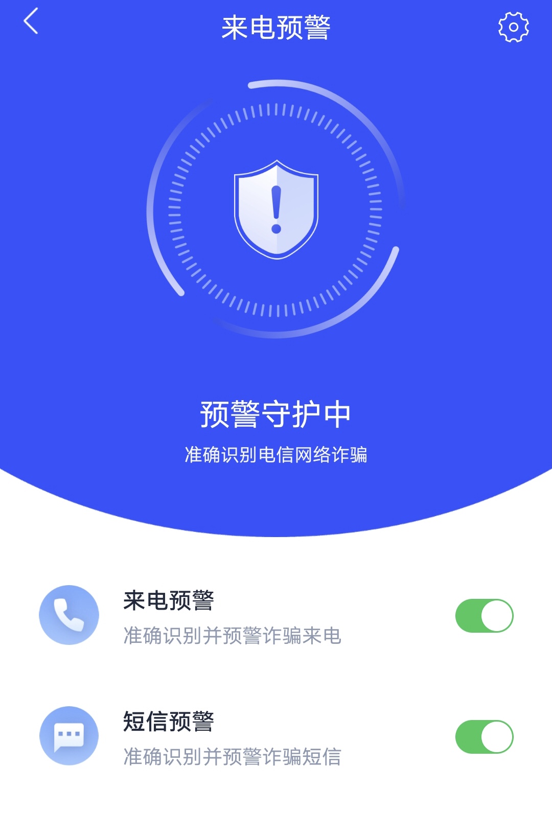 3、完成身份認(rèn)證和人臉識別后,點(diǎn)擊頁面上的來電預(yù)警,即可開啟全方位的詐騙預(yù)警。